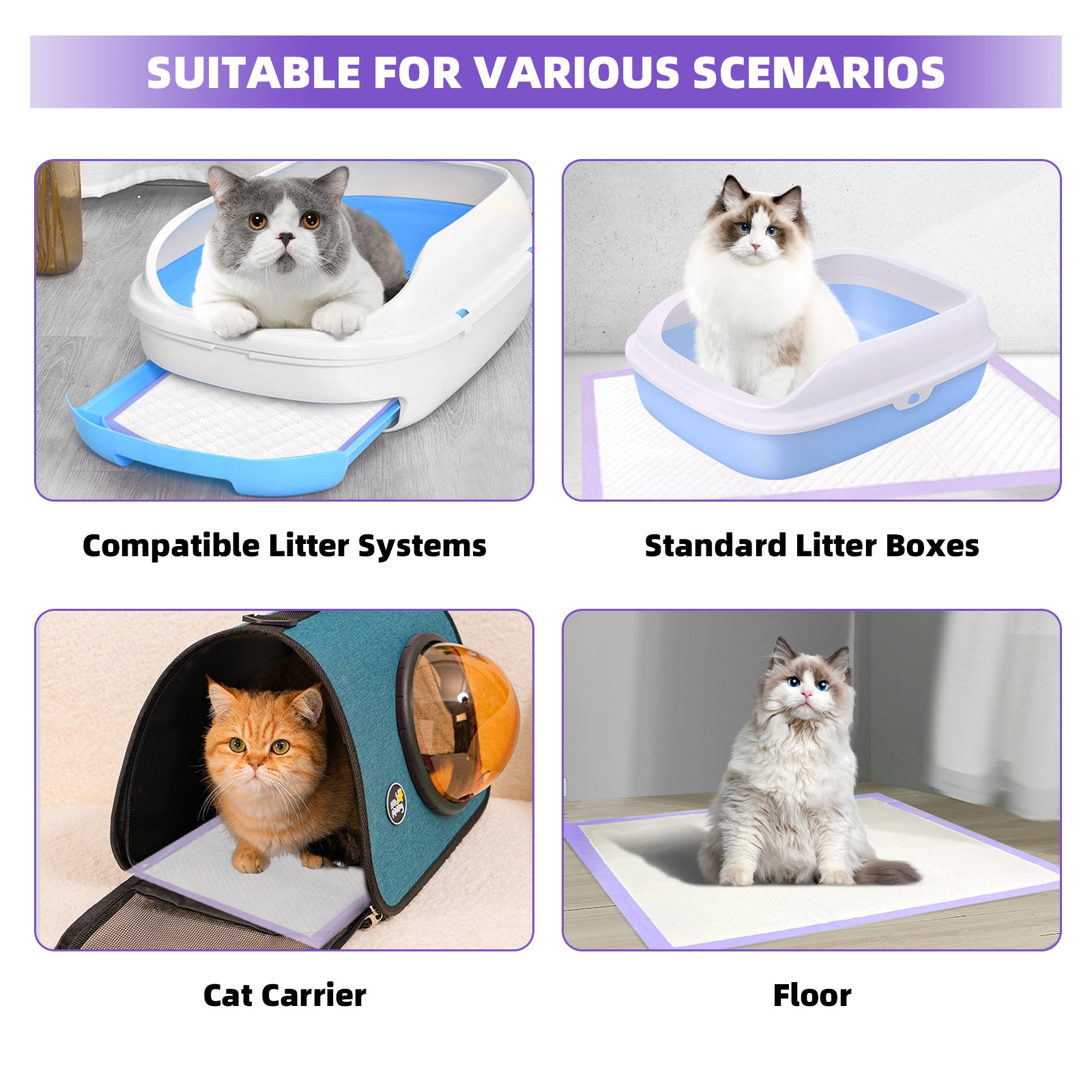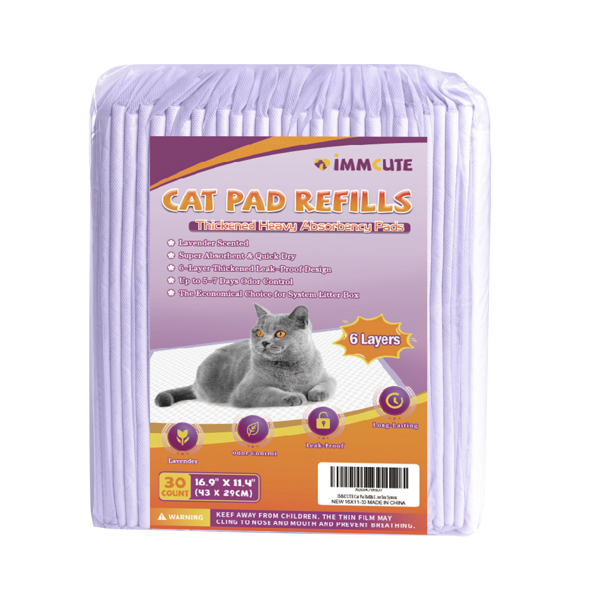 - đ¸ăOdor-ControlăThe cat pad refills for litter box are designed with fast-drying technology to prevent urine spills, and the thickened SAP polymer of the kitty litter pads turns urine into a gel quickly to lock in liquid. Disposable cat pads with lavender ingredients, fresh scent helps control unpleasant odors.