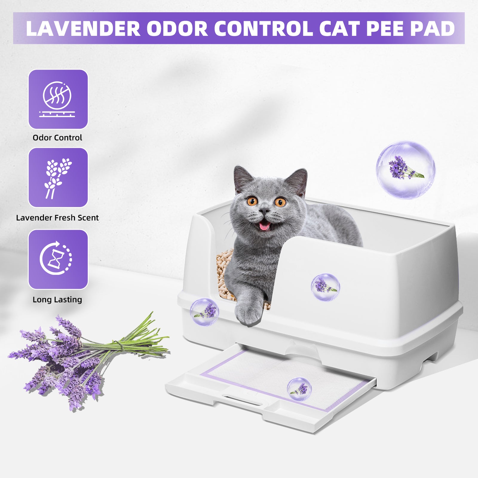 Cat Pads 16.9" X 11.4", Lavender Scent, 30 Ct | Pee Pads for Cats | Thickened 6-Layer Super Absorbent